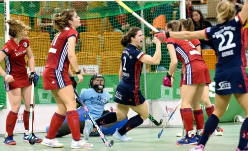 26.01.2019 – Die Damen vom Club an der Alster und Düsseldorfer HC treffen am Sonntag im Finale des real FINAL FOUR 2019 in der Mülheimer innogy-Sporthalle aufeinander. Während die Düsseldorferinnen ihre Partie gegen den Mannheimer HC in der regulären Spielzeit entscheiden konnten, musste Titelverteidiger Alster ins Shoot-Out gehen. Dabei konnten die Hamburgerinnen froh sein, gegen den TSV Mannheim überhaupt so weit gekommen zu sein. Denn die Kurpfälzerinnen verkauften sich im 1. Halbfinale sehr teuer und führten sogar zweimal mit zwei Toren. So sprach dann auch Alster-Co-Trainer Manuel Altenburg von einem „nicht ganz verdienten Sieg“ und Carsten Felix Müller, Trainer der unterlegenen Mannheimerinnen, gab sich „weder enttäuscht noch traurig“ und lobte sein Team. Dieses unterlag nach den regulären 60 Minuten in dem folgenden Shoot-Out, weil Alsters Helen Heitmann zweimal stark gegen Laura Keibel und Charlotte von Bodegom parierte und ihre Teamkolleginnen Anne Schröder und Hanna Valentin trafen.
