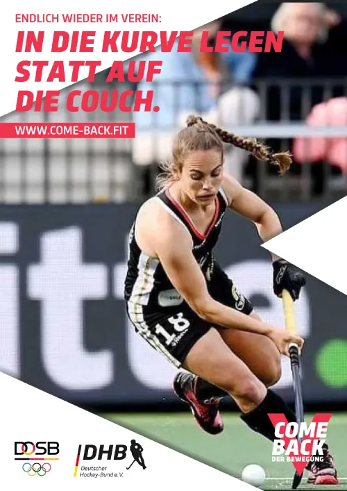 Deutsche Hockey-Bund ist diesem Ruf gefolgt und hat aus dem Baukastensystem der Kampagne bereits eigene Motive mit starken Slogans und Bildmotiven erstellt. Nun ruft er auch seine Vereine dazu auf, diese Botschaften sowohl auf den Hockeyanlagen Deutschlands, als auch in den sozialen Medien unter dem Hashtag #wirfürhockey zu kommunizieren und das Comeback des (Hockey-)Sports mit all seinen Facetten zu stärken.