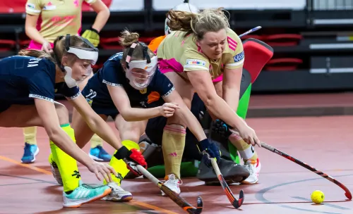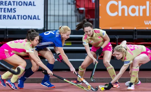 15.02.2020 – Die Düsseldorfer Damen trafen beim EuroHockey Indoor Club Cup 2020 in Den Haag (NED) auf den ukrainischen Meister MSC Sumchanka. In einer engen Partie setzte sich das Team von Nico Sussenburger am Ende verdient durch und trifft nun im Finale am Sonntag (13.45 Uhr) auf Gastgeber hdm Den Haag. Zuvor hatten die Rheinländerinnen auch das dritte und letzte Gruppenspiel gegen den HC Minsk deutlich für sich entschieden. (Fotos: Worldsportpics.com)