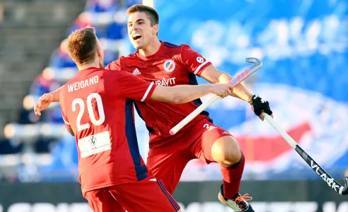 08.052021 – Der HTC Uhlenhorst Mülheim kann nach dem 6:5-Penaltysieg gegen Gastgeber Mannheimer HC seinen Titel verteidigen. In einem engen Viertelfinale mit wenigen Torchancen egalisierten sich beide Mannschaften über lange Zeit. Zwei etwas überraschende Mülheimer Führungen durch Malte Hellwig glich Gonzalo Peillat jeweils per Strafecke aus. Im Penaltyschießen waren die Westdeutschen den einen Schützen besser. Während Timm Herzbruch (2), Malte Hellwig und Jan Schiffer für die „Uhlen“ trafen (Benedikt Fürk und Tobias Matania vergaben), waren auf Mannheimer Seite nur Teo Hinrichs (der im zweiten Anlauf verschoss), Raphael Hartkopf und Linus Müller erfolgreich. Mülheim trifft nun am Sonntag (Anstoß 16 Uhr) in einem reinen West-Finale auf Rot-Weiss Köln. (Fotos: WORLDSPORTPICS.COM/Frank Uijlenbroek)