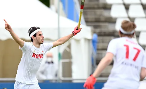 08.05.2021 – Rot-Weiss Köln greift nach dem neunten deutschen Feldtitel. Nach dem 6:4 gegen den Berliner HC stehen die Domstädter im Endspiel des FINAL FOUR 2021. Zweimal ging Rot-Weiss Köln im ersten Durchgang in Führung. Berlin traf immer dann, wenn Köln dabei war, die Partie an sich zu reißen und führte nach der Pause sogar mit 4:2. Innerhalb zweier Minuten drehte Rot-Weiss Köln die Partie aber wieder und blieb auf der Siegerstraße. Nach dem letzten Titel 2016 an gleicher Stelle kann Rot-Weiss Köln nun am Sonntag um 16 Uhr den Titel Nummer neun klarmachen. (Fotos: WORLDSPORTPICS.COM/Frank Uijlenbroek)