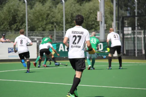 Ganz zu Beginn war der Weg noch etwas holprig vor lauter Aufregung: „Nach stotterndem Anfang, haben wir nach und nach das Zepter in die Hand genommen und verdient gewonnen“, sagte M35-Trainer Peter Krueger im Anschluss der Auftaktpartie am Montag gegen Wales. Dieser erste Auftritt endete mit einem klaren 4:0 für die Herren aus Deutschland. Jener „stotternde Anfang“, wie es Krueger betitelt, zeigte sich vor drei Tagen vor allem in einer schier unauflöslichen, sowie torlosen Angriff-Konter-Dynamik, in die sich beide M35-Mannschaften verstrickt hatten. Das erste Tor war schließlich der „Dosenöffner“ und drei weitere folgten. Dennoch lautete die Konsequenz für die anstehende Begegnung mit Irland: Schneller ins Spiel kommen und mehr Torchancen verwerten.