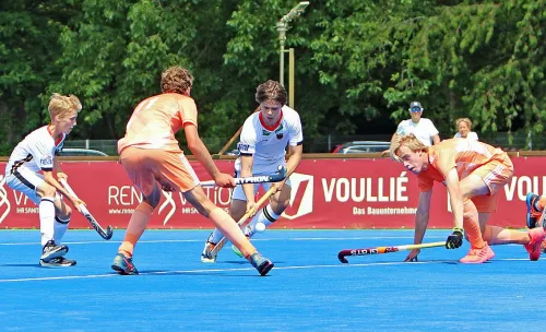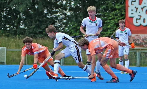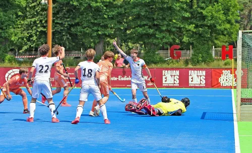 26.05.2021 - Torreich endete das erste von zwei Länderspielen der männlichen U16 in Mönchengladbach. Auf der Anlage des Gladbacher HTC schlugen die deutschen Jungen am Samstag die Gäste aus den Niederlanden mit 7:3 (4:2). „Wir können sehr zufrieden über Leistung und Ergebnis sein“, freute sich Bundestrainer Peter Maschke, der aber auch „ein bisschen relativeren“ wollte, da es für das Oranje-Team die erste Maßnahme des Jahres war, während seine Schützlinge bereits an Pfingsten gegen Belgien spielen konnten. Allerdings mischten in der personell veränderten DHB-Auswahl heute auch zehn Länderspielneulinge mit.