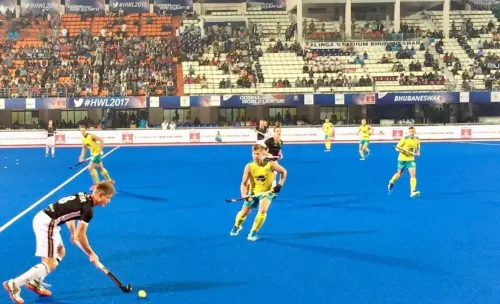 02.12.2017 - Die deutschen Herren haben sich im zweiten Gruppenspiel beim World-League-Finalturnier in Bhubaneswar (IND) mit Australien einen packenden Kampf geliefert. Das Kermas-Team war nach starker erster Hälfte verdient 1:0 zur Pause in Front, doch der Weltmeister drehte die Partie zu Beginn des letzten Viertels, ehe nach starkem Finish Kapitän Martin Häner noch den insgesamt verdienten Ausgleich besorgte. Im letzten Vorrundenspiel trifft die DHB-Auswahl nun am Montag um 15 Uhr deutscher Zeit auf Gastgeber Indien.