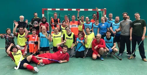Auf die Frage, ob denn "alles so viel anders ist, sein muss oder kann" gingen die beiden niederländischen Experten Martin de Koning und Anja Frederiks in der Praxiseinheit ein. Nach dem Motto „Lassen, was man lassen kann, und anpassen, was angepasst werden muss“ sind sie bereits seit zwei Jahrzehnten erfolgreich an der Entwicklung von Specialhockey in den Niederlanden beteiligt. „Das Training ist eigentlich wie Kindertraining, da muss man auch kreativ sein und Begeisterung und Spaß am Hockey vermitteln“ resümierten die Teilnehmer nach dem Praxisteil.