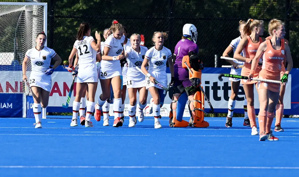 Die deutschen U21-Juniorinnen gewinnen im Shootout mit 3:2, nachdem das Spiel zuvor mit 1:1 endete und treffen somit am Samstag (30.07., 15:45 Uhr) im Finale auf Belgien oder England.